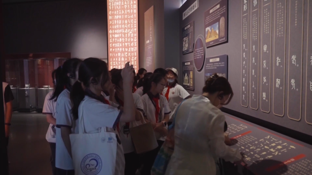 上午九点,奉贤区博物馆二楼“丹甲青文——中国汉字文物精华展”的小单间迎来了“新住户”。一幅原稿长度超过7米、装裱后长达12米的草书《千字文》手卷,正在向观众展示自己的风采。此长卷运笔遒劲,书写轻重有法,自始至终一气呵成。