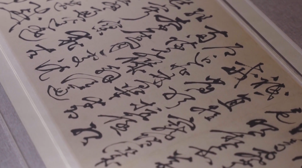 奉贤区博物馆文保部工作人员杜倩倩介绍道,选中这件展品,不仅因为张弼是今天的奉贤青村人,同时也因为这件草书作品和本次文字展的主题非常地契合。“我们也是把它作为展示奉贤本土历史文化的一个重要窗口。”