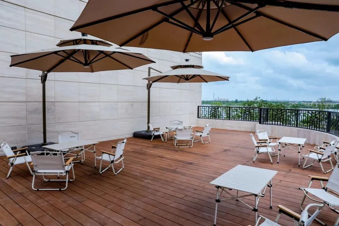 当然,大隐书局•云起书房带来的惊喜远不止于此。身处湖岸一线,怎能少了波光作陪,超大景观露台将兰香湖自然风光与阅读空间巧妙结合,书房空间在水光潋滟间盛开,湖面碧波,沁人书香,相看两不厌。