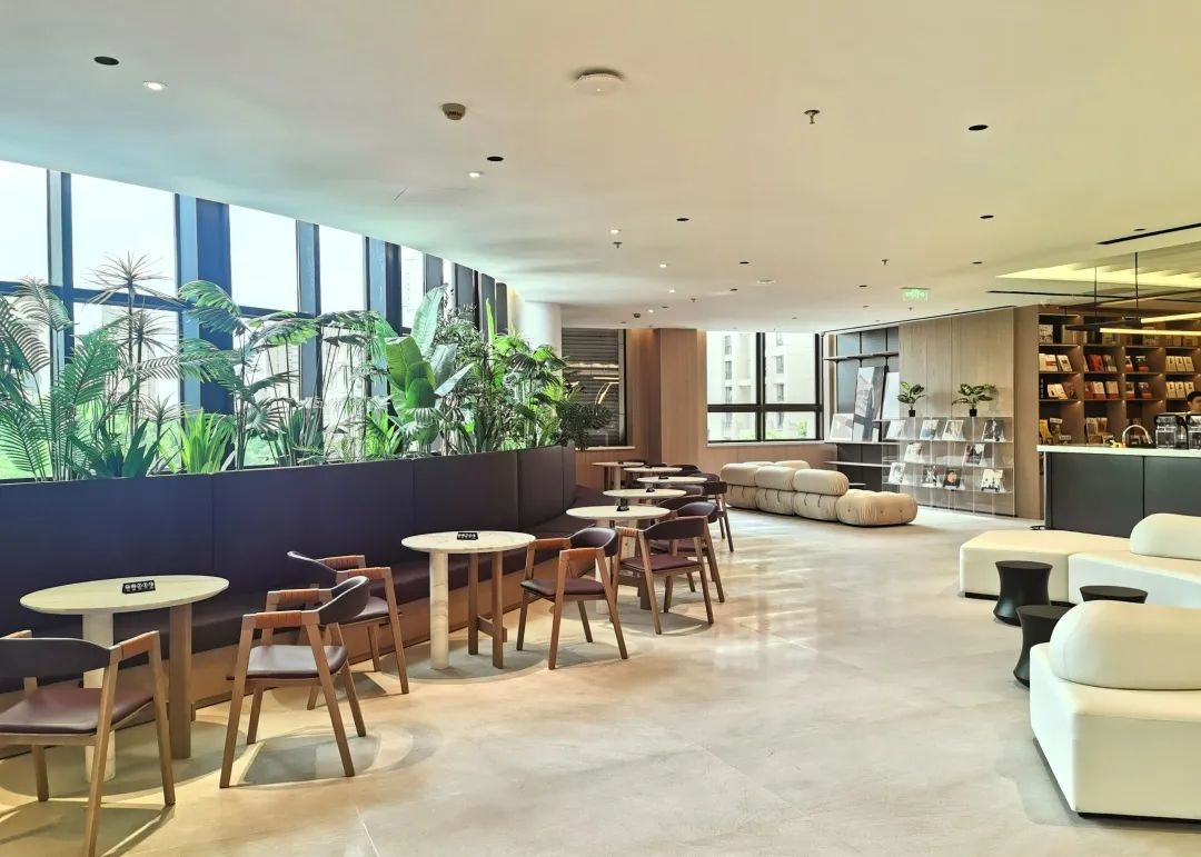 宽敞明亮的阳光中庭里,下沉式设计打破了传统的平面布局,为读者提供自在、惬意的停留空间;融入楼宇的露天花园别具雅趣,在这里,无论是小憩、阅读还是赏景,都别有一番滋味。