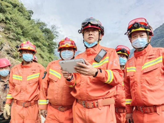 2022年9月6日,王庆银(右三)带队参加四川泸定抗震救灾。国家安全生产应急救援中心 供图