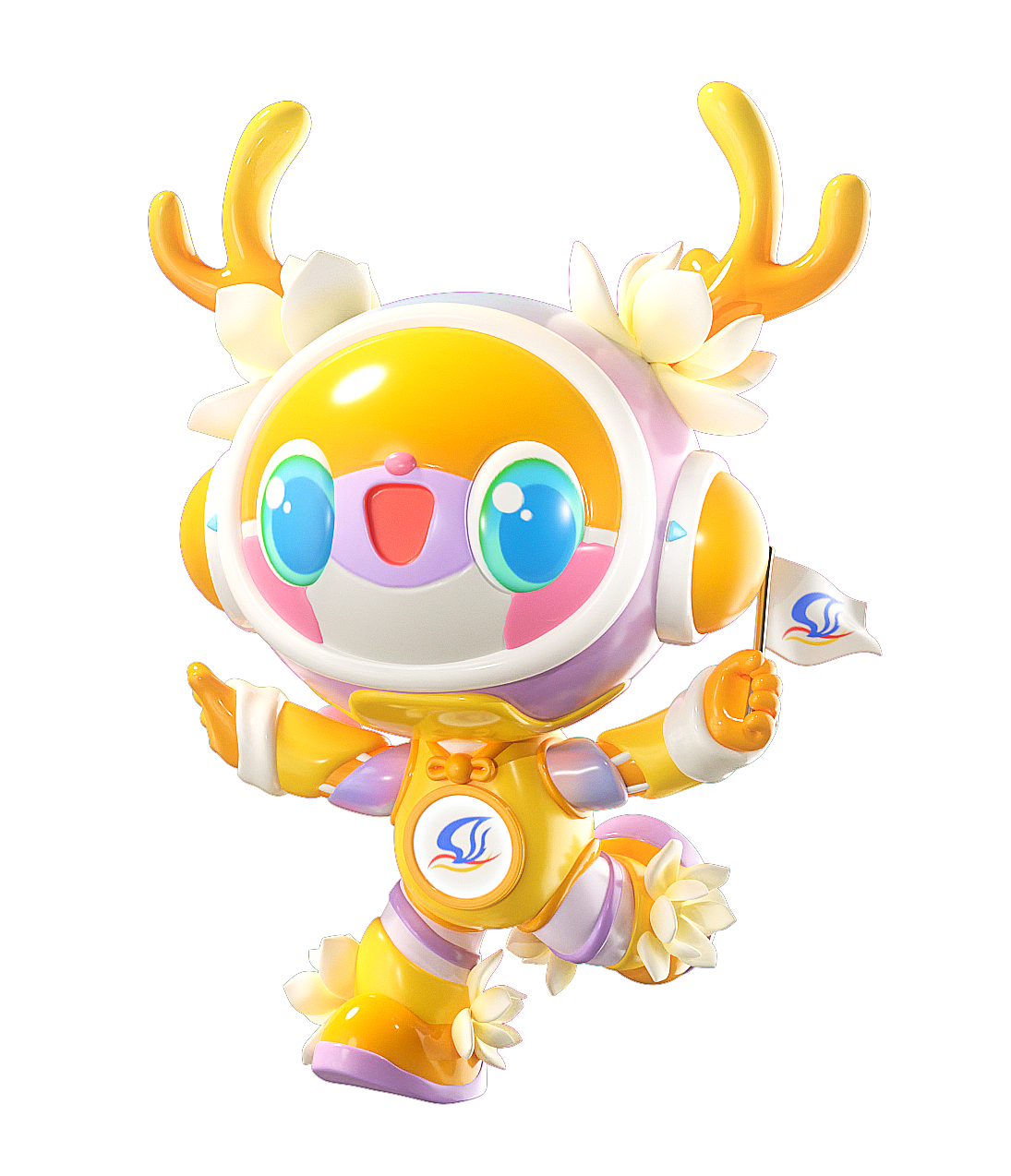 宇宙旅行家“乐乐”的外型延续了“乐乐”最重要的主视觉特征,包括巨大的鹿角、圆脑袋、大眼睛、嘴周围的白色区域等,并将最能够代表上海文化的元素之一—上海市市花白玉兰植入到造型设计中,突出绿色环保主题,增强其作为“上海礼物”的属性。“乐乐”的服装也融入了盘扣等传统服饰元素,更加具有民族特色。动作造型上致敬原型乐乐手持旗子奔跑的形象,呈现为张开双臂拥抱的姿势,寓意用拥抱欢迎所有来自海内外的朋友。