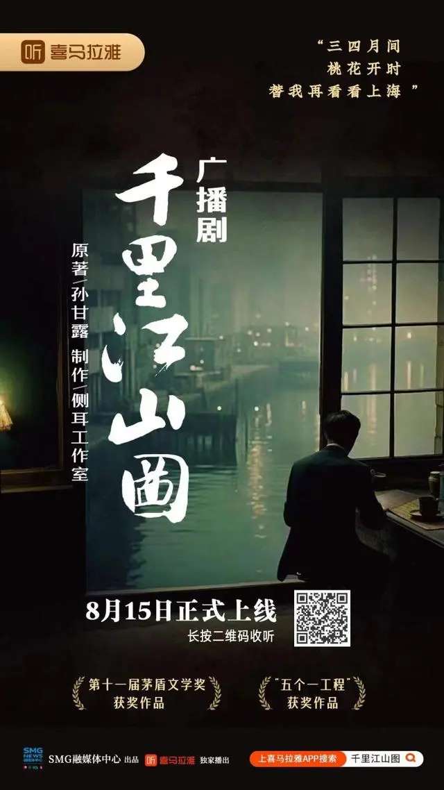 东方网8月17日消息:近日,喜马拉雅平台携手上海广播电视台,联袂上线备受期待的广播剧《千里江山图》,该剧原著为上海著名作家孙甘露所创作,由上海文艺出版社推出,首发于《收获》杂志的长篇小说专号。通过声音媒介,该广播剧将历史、情感和文化融合为一体,这一作品将孕育上海精神的历史画卷带入人们的耳畔。