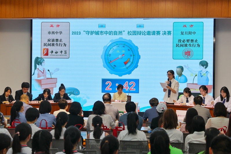 “民间放生不利于自然生态的循环,应该全面禁止”“民间放生也体现了部分人对于生态环境保护的意识,需要加以科学引导”……8月20日,一场针对民间放生行为合理性的辩论赛在市西中学激烈上演。这场由上海自然博物馆(上海科技馆分馆)和上海铁路运输检察院共同主办的2023上海市中学生“守护城市中的自然”校园辩论邀请赛迎来最终的强强对话。