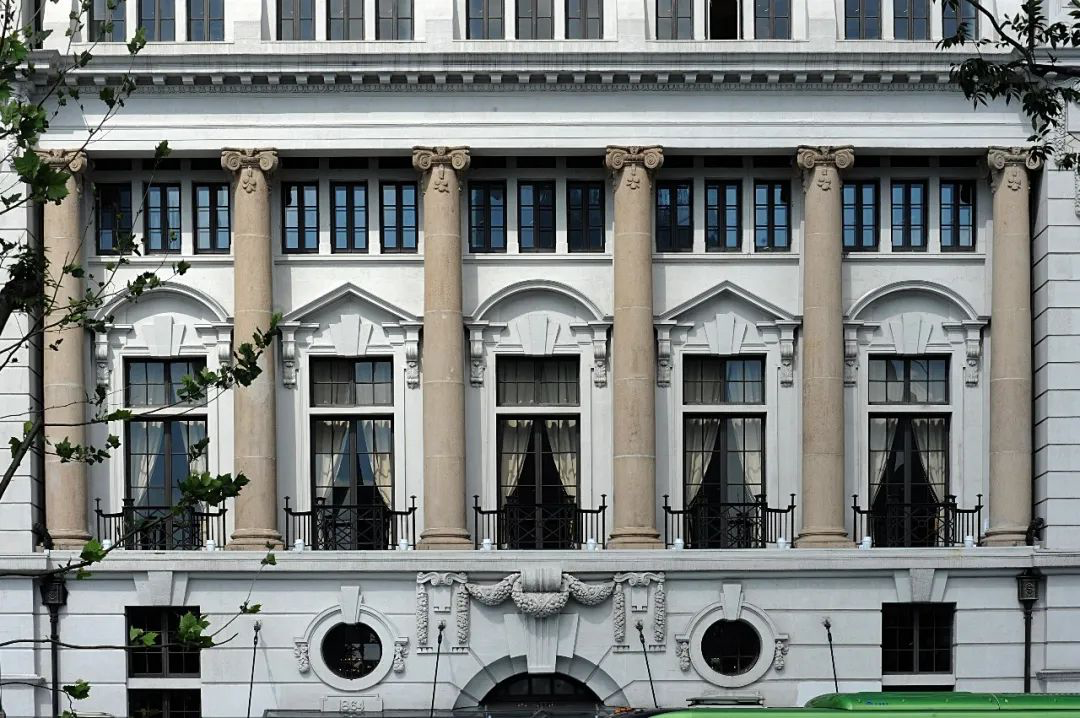 中山东一路9号是一幢具有英国维多利亚时代后期新古典主义风格的外廊式建筑,也是外滩灰色基调风景线中仅有的两栋红砖楼房之一。