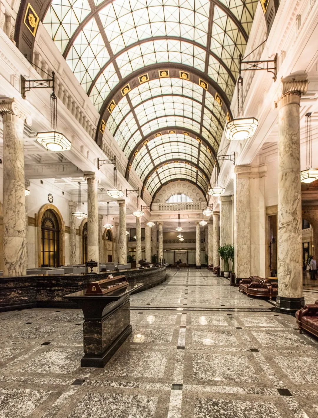 东风饭店(原上海总会,现为外滩华尔道夫酒店)位于中山东一路2号,总用地面积2324㎡,总建筑面积9412.7㎡,是一幢檐口高度23.7m,地上6层的钢梁柱及砖混结构建筑,英式新古典主义,是现存外滩建筑群中唯一一栋总会建筑。1910年建成后以优美雅致的空间与造型引人注目,为多功能高端公共活动俱乐部建筑,是上海最早的俱乐部建筑之一,有着远东最大的长酒吧台。
