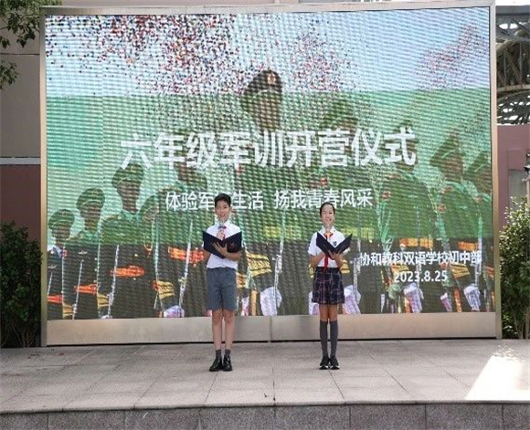 为切实加强学生国防教育及组织纪律观念,提高学生组织性、纪律性,增强学生身体素质,为适应初中的学习生活奠定良好基础,初步形成积极向上、团结奋进的班集体,协和双语教科学校于2023年8月25日至27日开展2023届六年级新生军训活动。