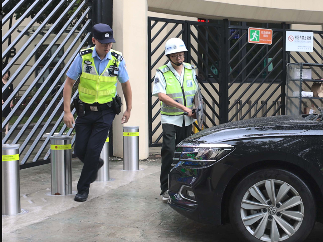 “有车辆企图冲入校园!”发现情况后,学校内的保安立即启动了防撞装置,一辆试图冲进校园的机动车被拦停。