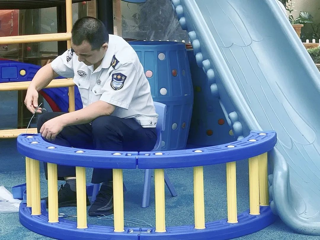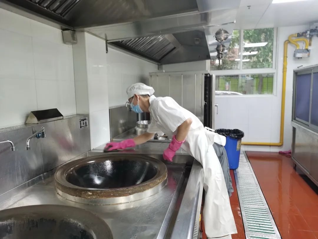 顶着酷暑,保育员们认真打扫卫生,清扫室内外每一个角落;保洁、保安们把体育器械里里外外进行了清洗,对各类玩具设施进行了安全大检查;厨房工作人员也扫、抹、擦、洗、冲,干劲十足。