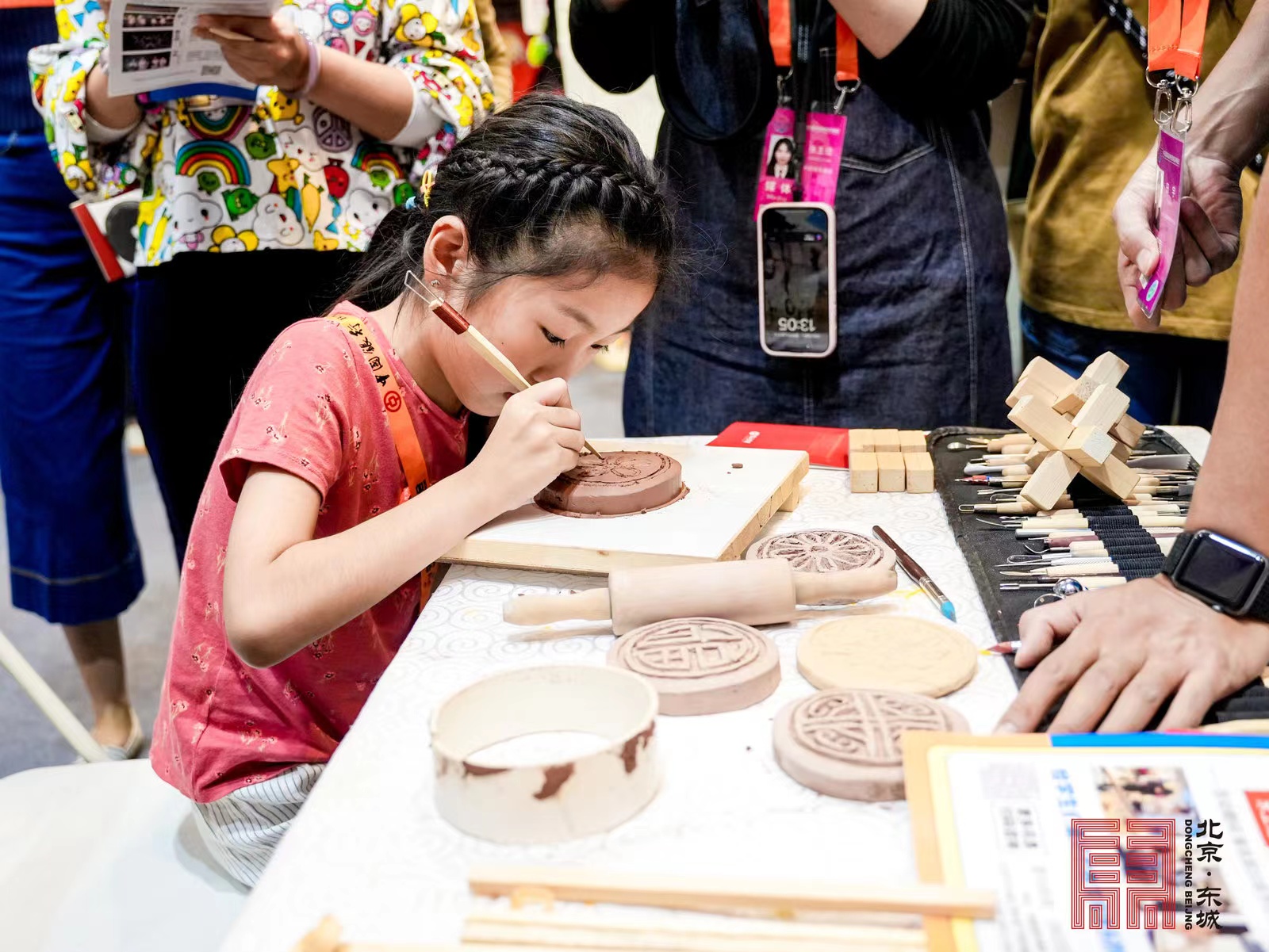 看传统文化融入现代生活的“雅与韵”城市文化味浓,巷陌烟火升腾。观展、赏剧、尝鲜、品茶,通过现场非遗老字号体验区、沉浸式戏剧舞台的打造,东城区找准传统文化与现代生活的连接点,将文化消费的热度也带入了服贸会现场。“故宫以东”特色文商旅融合品牌将格调雅致的生活方式带到了观众面前。人民美术文化园、北京早晨全家福照相馆及史家胡同文创社等机构携手复刻出老城时光场景打卡空间,营造了浓浓的乡愁氛围。尚潮创意展示“宫猫”“雍正御批折扇”等畅销IP形象,将故宫淘宝最新文创产品带给了现场观众。“小北的朋友”聚焦青年文化群体,用美食传递感情,围绕东城文化地标,推出“东城印巷”系列文创衍生品。由星辰万仟公司为东城区量身定制的三维立体“東”字造型LOGO,由近25万块榫卯积木历时2个月拼搭完成,展现了传统文化与现代创意的有机融合。