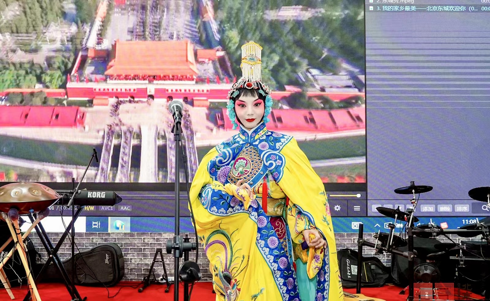 ▲青年戏曲演员刘静菲现场演绎经典剧目《霸王别姬》选段为了方便更多消费者走近东城,现场还设置了“东城印象”直播间,包括北京珐琅厂、龙顺成、红桥市场、尚潮文化、墨池文化、书香世业等机构,通过直播间宣传推广非遗技艺、文化创意产品、“中轴线”主题文化作品以及东城区对口支援地区文化特色产品等。