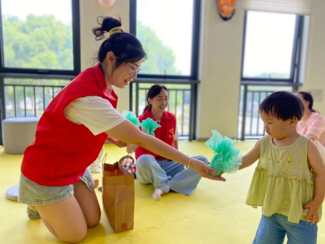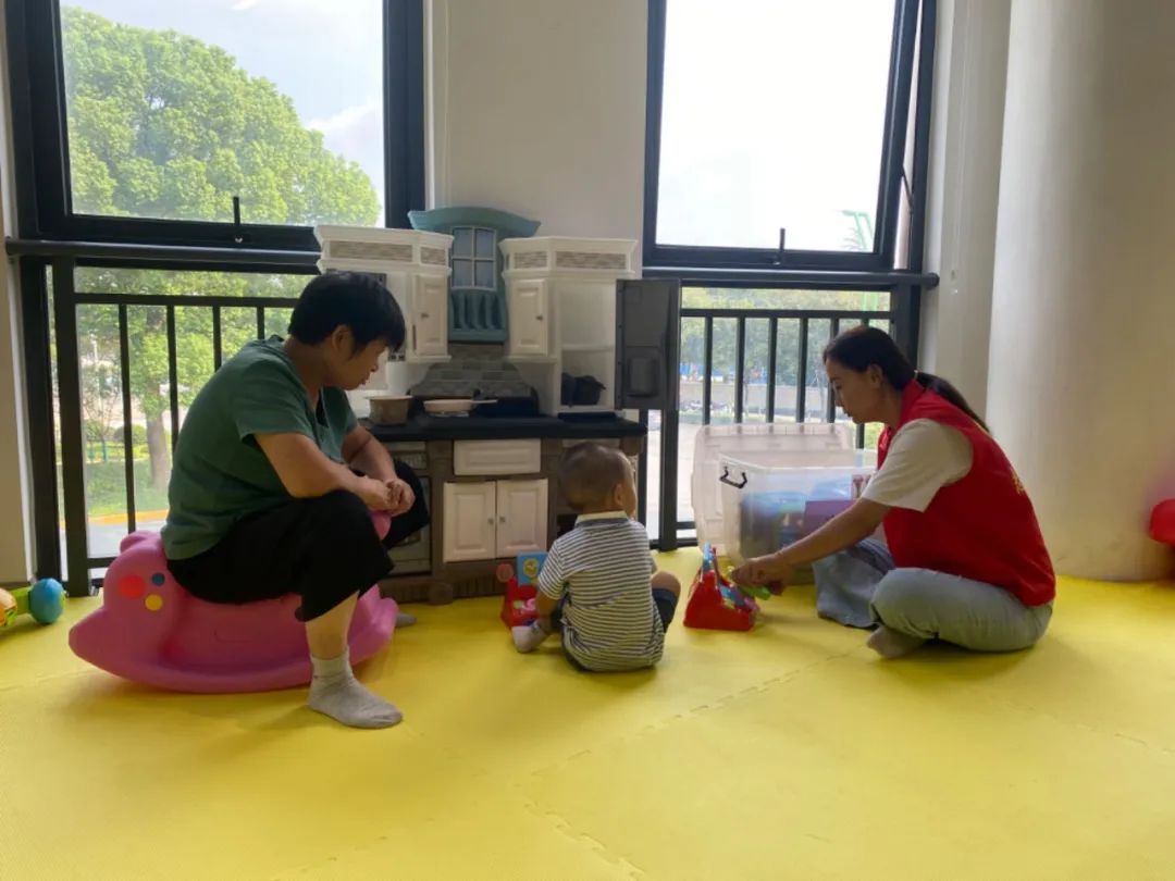 身穿“志愿者”背心的两位“宝宝屋”志愿者,是顾红叶老师和杨琼老师,她们都是启英幼儿园的带班老师。