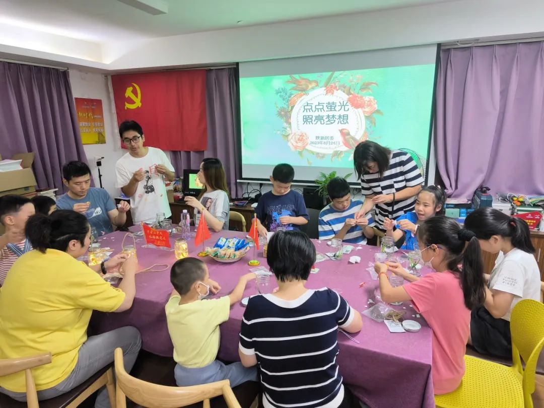 夜游花园的同时,居委会还设置了一些趣味互动游戏,孩子们在家长的带领下参与了“荧光球捉迷藏”“植物盲盒抽抽乐”等活动,小朋友们玩得不亦乐乎,像萤火虫一样愉快地在花园中“翩翩起舞”。大朋友们也忍不住加入其中,和孩子们一起手拉着手,享受这难得的亲子时光。最后,孩子们将手中的萤火虫小夜灯挂在了自己心目中的最美小花园中,此次活动在“花园夜景谁最美”评选中落下帷幕。