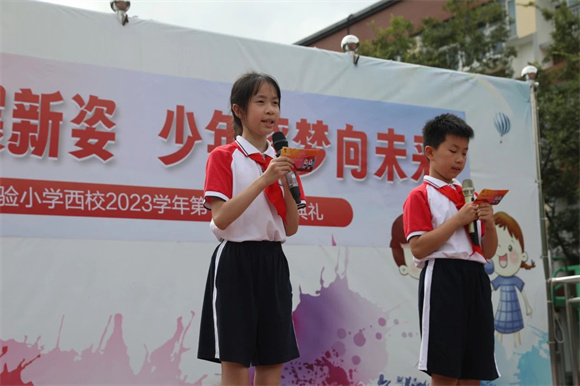 之后赵校长和江书记分别为两校区同学们送来了开学寄语。欢迎一年级的小同学们加入进西大家庭,同时对新学期提出了五点希望,希望同学们能成为“文明的使者”、“安全的守护者”、“守纪的示范者”、“学习的小主人”、“劳动的小达人”。