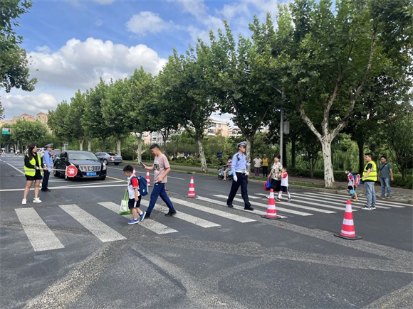 为切实抓好校园及周边道路安全管理工作,全面强化校园周边道路秩序管理,全力确保广大师生、家长出行安全,上海市公安局浦东分局交警支队五大队在开学首日7点半许,就来到了校门口进行巡视,指挥送孩子来校家长有序停放非机动车和机动车,指导家长孩子按规定佩戴头盔,系好安全扣,护送学生安全走斑马线过马路,保障平安上学路,筑牢交通安全屏障,形成了校门口一道靓丽的风景线。当天家长志愿者们也早早上岗,守护同学们的上学路。