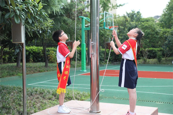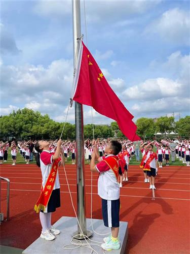 五星红旗是祖国的象征,是每一个中华儿女心中最神圣的图腾。进才实验小学西校全体师生共同高唱国歌,注目新学年的第一面五星红旗冉冉升起。
