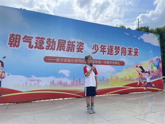 对于五年级的哥哥姐姐们来说,这也是小学阶段最后一学年了,一年级代表和五年级代表发言,畅谈新学期的梦想。