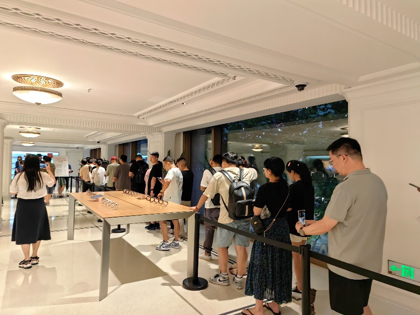“一直就很关注这台手机的,知道现在门店有实机展示,虽然天气不好,但还是过来想试用下。”还在排队等待体验的宋先生和记者聊道。
