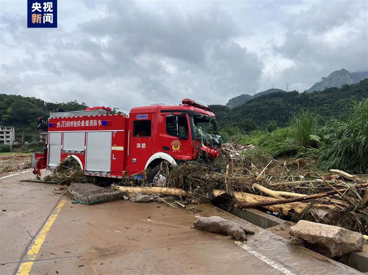 遇险消防车。     央视新闻客户端 图