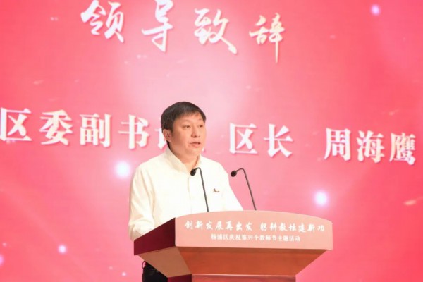 周海鹰代表区委、区人大、区政府、区政协,向辛勤耕耘、躬身育人的广大教育工作者和离退休老教师们致以诚挚的问候和崇高的敬意,向所有关心支持杨浦教育事业发展的社会各界人士表示衷心的感谢。他指出,教育是国之大计、党之大计;教师是立教之本、兴教之源。一直以来,杨浦深入践行人民城市重要理念,持续深化教育综合改革,促进教育事业优质均衡发展。全区广大教师以人民教育家于漪老师为榜样,为上海基础教育改革发展作出了突出贡献。当前,杨浦正全力打造人民城市建设新样板、奋力推动创新发展再出发,未来将始终把教育摆在优先发展的战略位置,把教师队伍建设作为重中之重,使教师成为最受社会尊重的职业之一。同时,也希望杨浦广大教师始终坚守“立德树人”之道,持续锤炼“学高为师”之能,坚定铸造“身正为范”之魂,切实扛起党和人民赋予的责任和使命,努力为中国式现代化建设提供有力支撑、作出更大贡献。