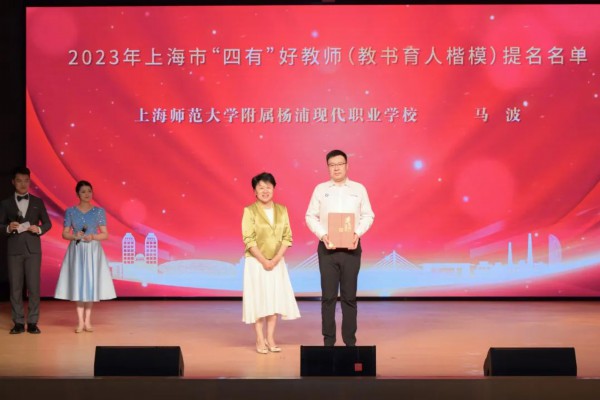 顾毓静为市“四有”好教师(教书育人楷模)提名获得者颁奖。