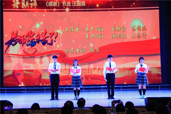 南中学子也为一年一度的教师节带来了特别节目,分别是歌曲《老师我想你》和诗朗诵《感谢》。他们用声音诠释教师这个辛劳而又光荣的职业,向培育祖国花朵的园丁道一声真挚的感谢!