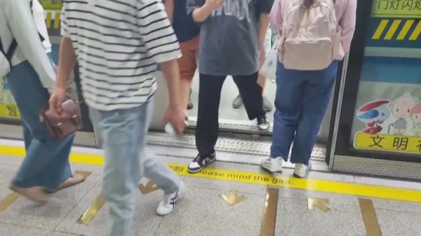 “我们八号线西藏南路站的站台,它是一个曲线车站,它的空隙会比一般的要大一点。”4、8号线西藏南路站车站站长助理陈昱说,“但是我们在标准范围之内,而且我们加装了防踏空条,在这里也想提醒我们的乘客,在上下车的时候一定要注意脚下安全,还是要做好先下后上。”
