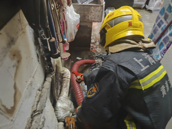 这两日的申城,时晴时雨,前一秒还是晴、热、晒的天气格局,下一秒就倾盆大雨。随着气流云团的发展,上海出现了局地强降水天气。因短时强降雨强度较大,造成了黄浦城区个别居民家中产生积水。为及时解决群众燃眉之急,黄浦消防多支排涝小组紧急出动,尽快恢复群众正常生产生活秩序