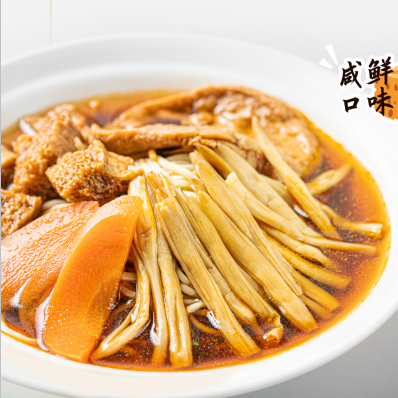咸鲜可口的海派素鸡面,素鸡吸饱了美味的汤汁,入口轻咬,满口浓郁鲜香,真真切切的海派味道。