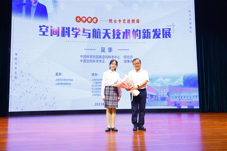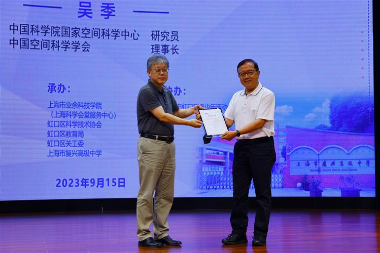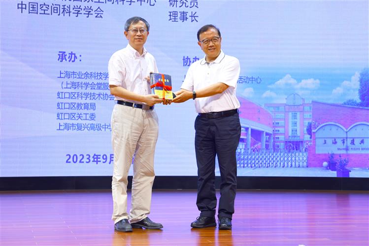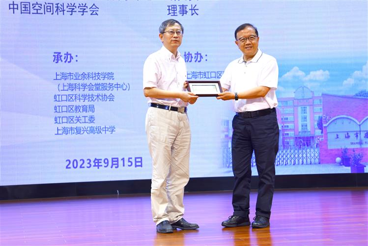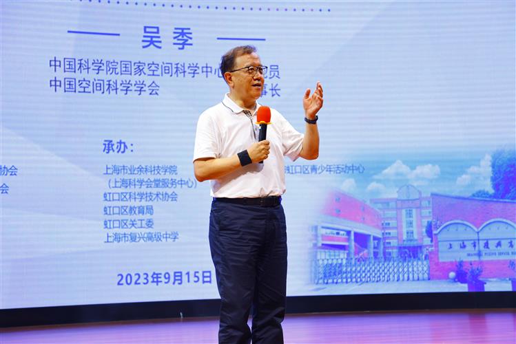 9月15日下午,由上海市科学技术协会、上海市教育委员会主办,上海市业余科技学院、虹口区科学技术协会、虹口区教育局、虹口区关工委、上海市复兴高级中学承办,上海市虹口区青少年活动中心协办的“大师课堂——院士专家进校园”空间科学与航天技术的新发展暨“仰望浩瀚星空探寻宇宙奥秘”展示活动在上海市复兴高级中学来歌堂隆重举行。