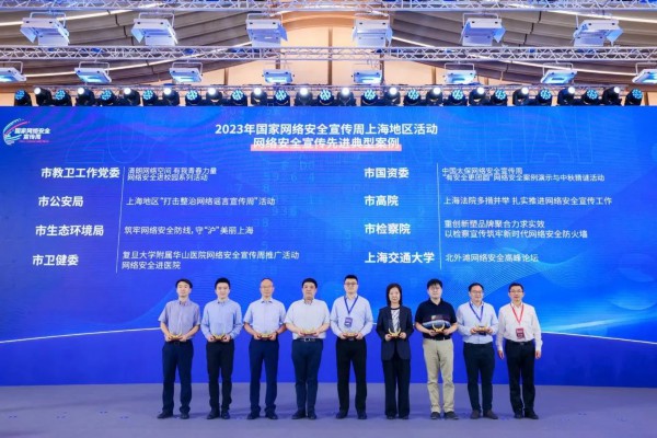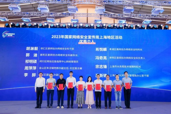 闭幕式上,对18家网络安全宣传优秀组织单位、18名网络安全宣传优秀个人、20个网络安全宣传优秀典型案例进行了表彰,并邀请了多位优秀代表交流网络安全工作的心得体会,分享各自的工作经验。活动宣布了普陀区成为2024年国家网络安全宣传周上海地区活动的主办区。