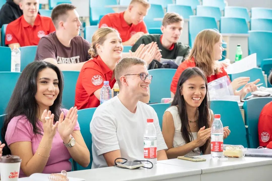 夏令营期间,营员们与中德工程学院的师生也进行了交流。恰逢同济大学2023级新生报到,德国学生自然是不愿意错过这一珍贵场面,纷纷前去参加中德工程学院的新生见面会,与同德学堂的大一新生交流互动,共话未来。