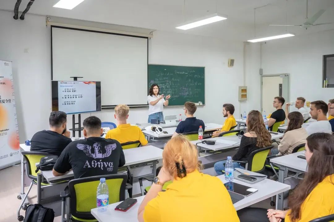 来中国,当然要学中文。一到同济,德国学员们迎来了第一次汉语及中华文化体验课程。发音、拼写、对话,每一个环节都能引爆班上的德国年轻人,他们直呼:汉语太有魅力了!自我介绍,超市、餐厅、火车站等场合交流,加上中国的传统节日和习俗,三位年轻教师把汉语体验课堂安排得惊喜连连、热闹极了!