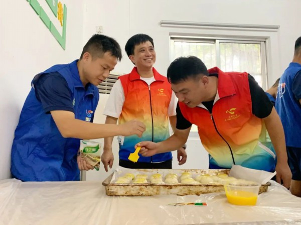 经过了一番交流互动,出自“福福话安全”和商户联盟这群大男人之手的鲜肉月饼也出炉啦,果然不负众望,卖相各具特色,胜在火候到位,用料实在,包裹着满满的心意,一个个“丑”并美味着。