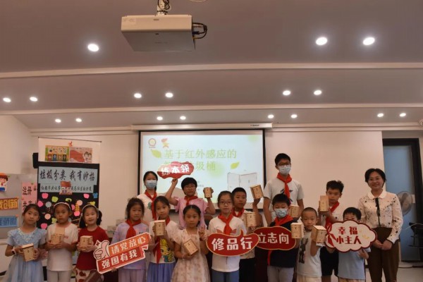 在掌握科学原理后,青少年们开启自我挑战——动手DIY制作“迷你自动开合垃圾桶”。孩子们化身“小小鲁班”,借助螺丝刀、螺丝钉,将木板、电线和电力装置组装。制作完成后,一个个自动垃圾桶只要用手在桶身前晃一晃,盖子就能自动打开了。在此过程中,社区工作人员不忘通过垃圾分类宣讲、观看《垃圾去哪儿了》视频、“垃圾分类我有妙招”意见建议等,带领孩子们争做垃圾分类实践者。