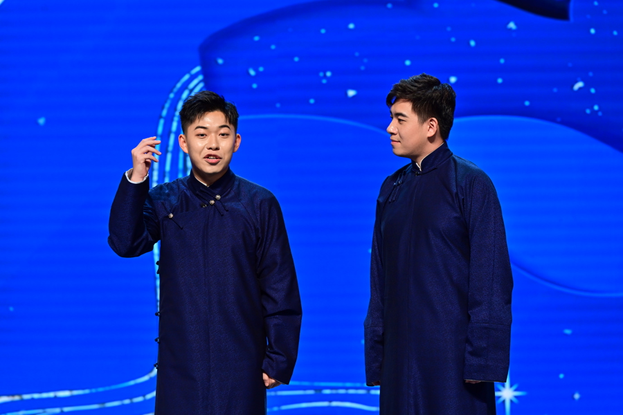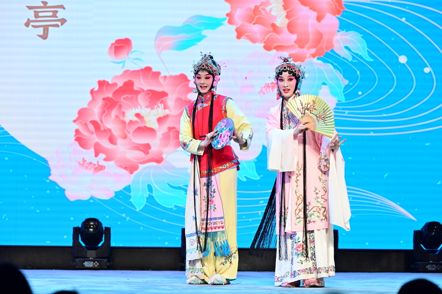 此次演出是《九州百戏》时隔三年再度唱响沪上。演出嘉宾中,来自天津电台的佀童强和广东电台的廖伟斌,不仅是业界知名的戏曲曲艺节目主持人,也是非遗传承人。他们参与的岔曲《庆中秋》和粤曲《彩云追月》,解说风趣,演唱精彩。来自苏州的评弹名家张怡晟、吴莲花则带来了经典书目《白蛇》中的“赏中秋”,弦索叮咚、吴侬软语,清雅婉转的弹唱勾勒出许仙与白素贞在中秋佳节泛舟赏月的浪漫景象。