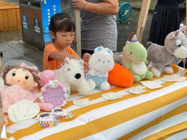 玩具、图书、玩偶……小家伙们纷纷展示出无穷无尽的创造力和商业头脑,化身小摊主,拿出了不少自己昔日百宝箱里的“小小收藏”,精心布置起自己的摊位,现场热闹非凡,各种小物件应有尽有,在社区工作人员引导下,小摊主们很快开始交换、出售小物品。