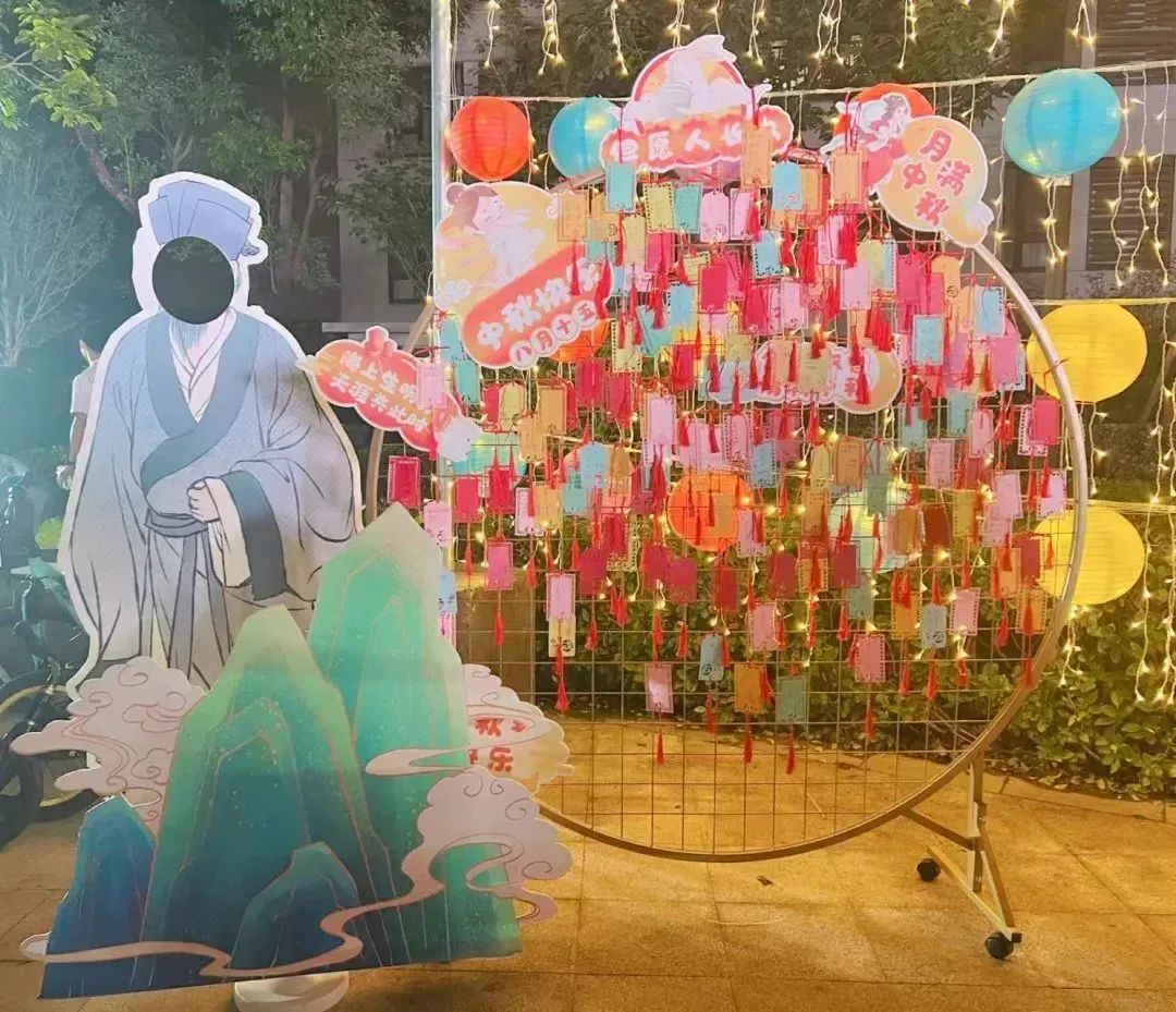 中秋寓意圆满美好,居民们来到党群服务站的中秋愿望墙边,领取许愿卡,DIY制作独一无二的心愿卡,许下心愿,传递美好祝福。