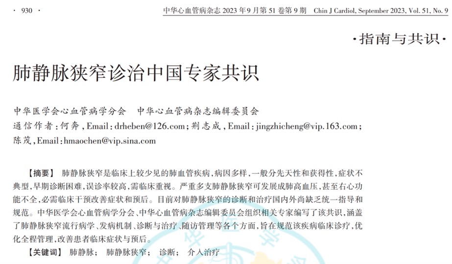 在第24个世界心脏日来临之际,受中华医学会心血管病学分会委托,上海市胸科医院心脏中心主任、心内科主任何奔教授团队领衔全国36位权威专家编写的《肺静脉狭窄诊治中国专家共识》正式发布,并在《中华心血管杂志》同步发表。这是国际上首部肺静脉狭窄诊治的中国专家共识,凝聚了中国心血管病学领域的诊治经验与智慧。