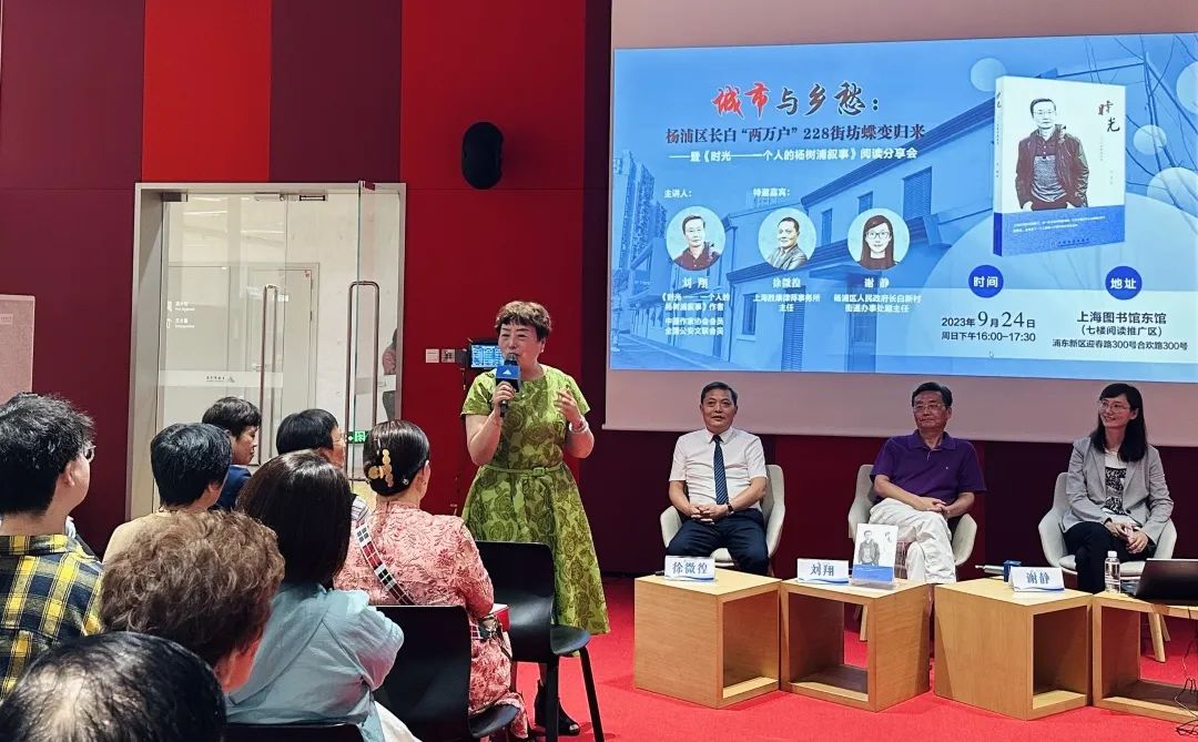近日,在上海图书馆东馆,中国作家协会会员、全国公安文联会员刘翔带着匠心之作《时光—一个人的杨树浦叙事》一书,与长白新村街道办事处副主任谢静,杨浦区人大代表徐微徨一起,和广大读者们开启了一段追忆长白228街坊历史与乡愁的美好时光。