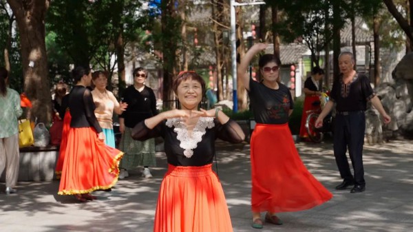 在青浦区盈浦街道小西门的口袋公园内,一抹艳丽的中国红格外醒目,他们是来自青浦夕阳红老年舞蹈队的叔叔阿姨们。伴随着《祝福祖国》的乐曲声,他们载歌载舞表达着心中的喜悦之情。