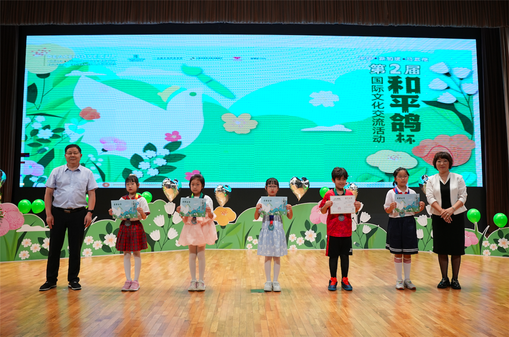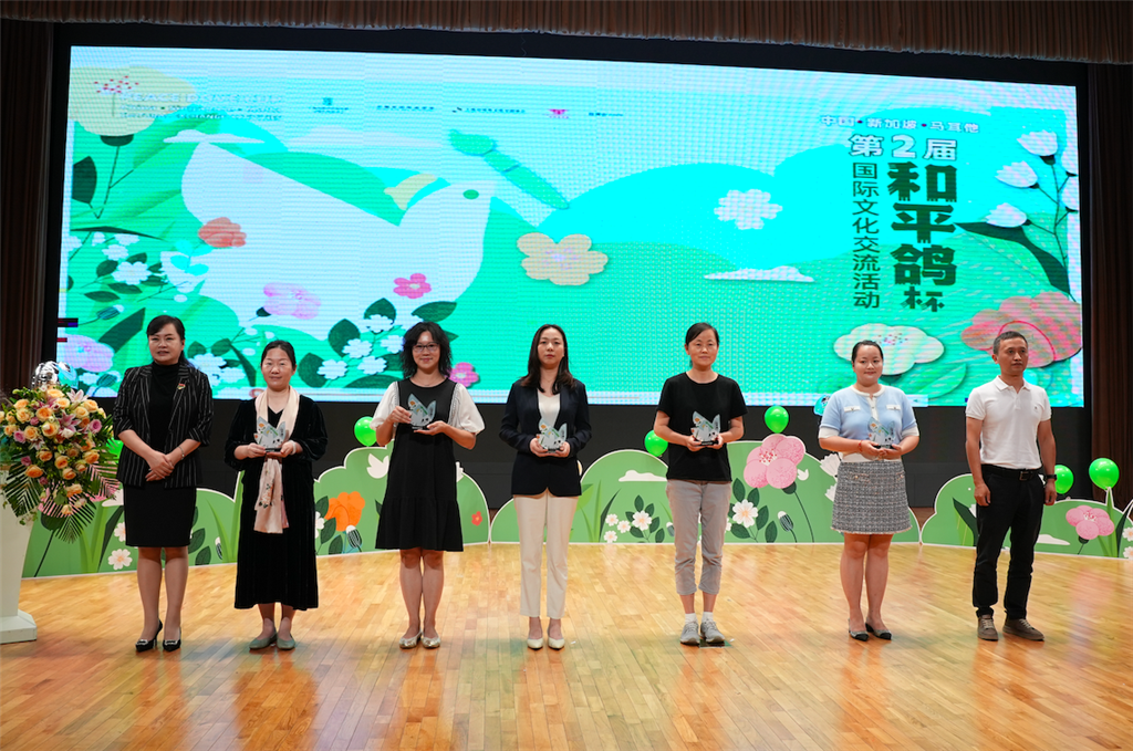 上海市对外文化交流协会副会长兼秘书长邓晓贤、上海宋庆龄基金会副秘书长朱亚萍为一等奖获得者代表颁奖