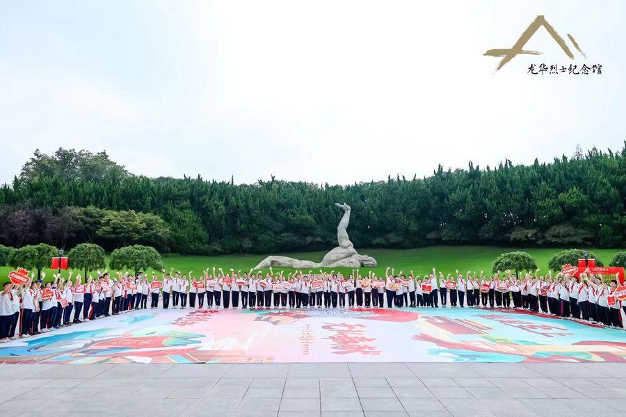 在龙华烈士纪念馆内,同学们观看了实景照片、历史文物和“龙华二十四烈士”英雄事迹。在龙华碑苑《且为忠魂舞》大型烈士雕群前,同学们每人一句,朗诵着《蝶恋花·答李淑一》,表达对革命先烈、民族英雄与前辈楷模的哀思与怀念。
