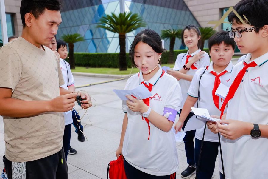 根据规则,同学们需以小组为单位,拿着活动任务书在龙华烈士陵园园区内寻找点位打卡,参与各点位的任务与游戏。