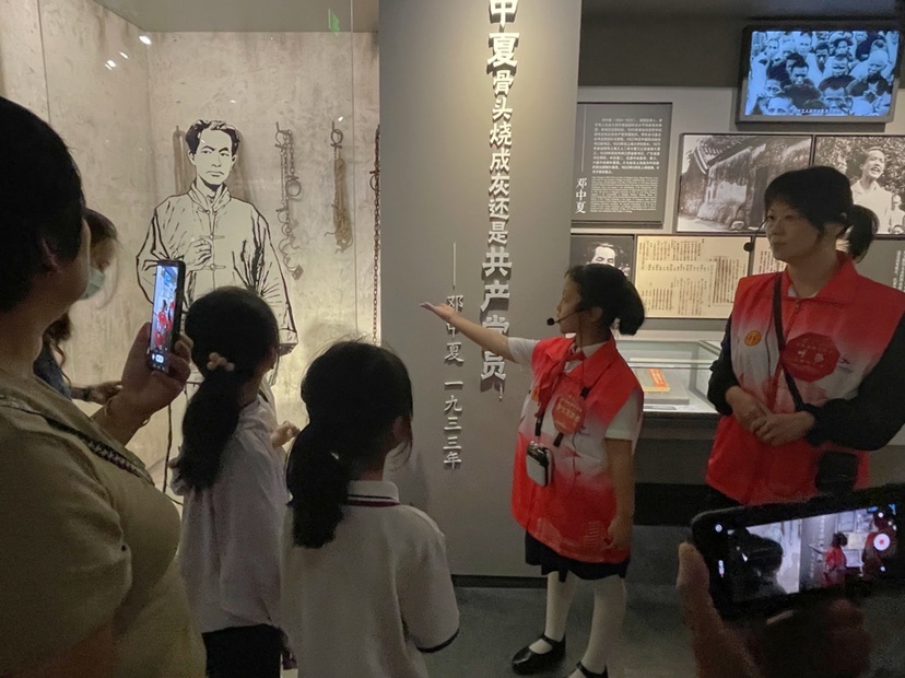 每月30日是徐汇区总工会和龙华烈士陵园商定的“劳模志愿讲解日”,从今年五卅纪念日当天开讲以来,已经先后持续开展了五卅工运主题、七一建党主题、八一国防教育主题、“开学第一课”中小学生专场等多场志愿讲解,这次9月的30日正逢长假休息日,本想暂停一次,让劳模先进们休息下;但劳模苏嵘、余美香、周晴等提出9月30日是烈士纪念日,更要通过志愿讲解这种特别有纪念意义的方式来弘扬红色精神、赓续红色文化,来向祖国、向英烈致敬,9月30日这场是必须要讲的。参加了8月30日“开学第一课”讲解的学生志愿者陈莉菡和雒祺钰的家长也早早打来电话询问9月30日是否有志愿讲解……这次珍贵且特别有纪念价值的志愿讲解便如期举行了。因首阳而遗憾错过本次讲解的市劳模周晴还专门发信来询问讲解进展情况。
