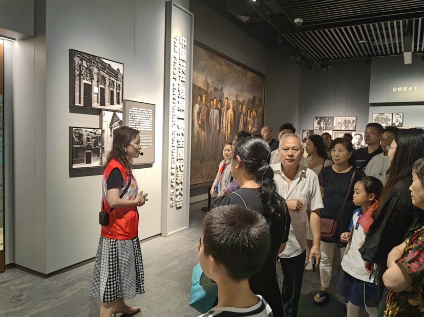 从下午1点半直至4点多,每隔20分钟连续六场的讲解对所有志愿者都是前所未有的一次考验。讲解间隙,劳模叶莎带着世外小学的王澄钰赶紧找区总工会联络员,原来小王同学连续两天高烧,早上还吐了,没怎么吃东西,但她还是坚持要来解说,为了不影响后续的讲解,赶快来补充点能量;劳模苏嵘为了锻炼小志愿者沈九辰,把大批量讲解留给了小沈,自己则对赶不上大部队的7批较少人数的观众进行了拾遗补缺式的讲解,而且指导小沈要多学习党史,让以后的讲解更规范更有底气;机关志愿者王雪微虽然把讲解机会让给了劳模和学生,但从分发讲解器、遥控器到全程拍照,整场都不得空闲……在大家的共同努力下,当天听取讲解人数达360余人。