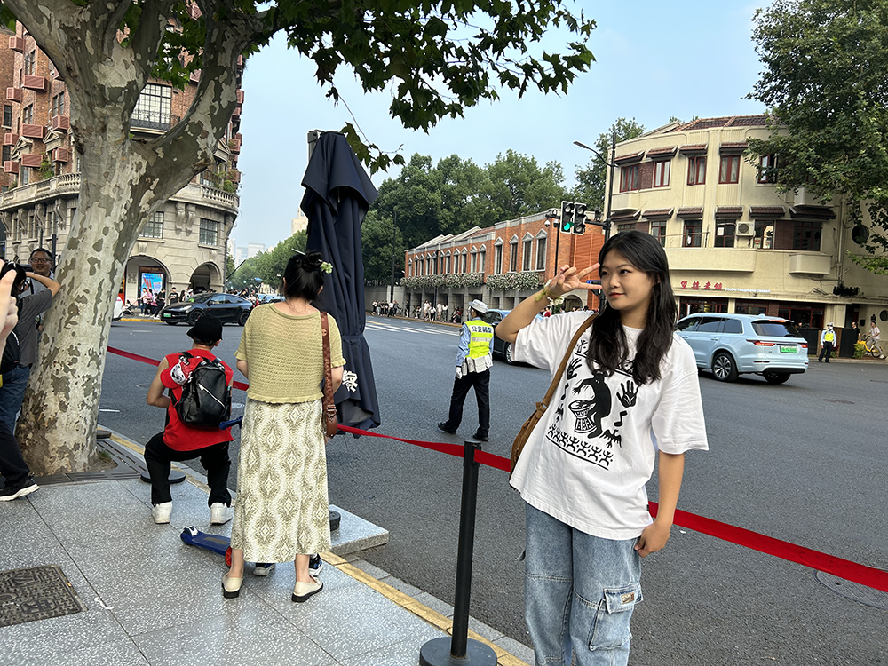 在这个客流最密集的路口,徐汇警方照例在“最佳打卡点”加派安保力量,设置“一米线”软护栏,提醒游客注意拍照安全。