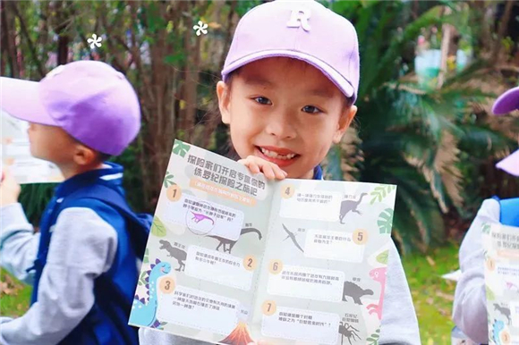 在这里,孩子们带着《科普打卡探险记录手册》,化身电影中的主人公,开启一场神奇的恐龙探险之旅。