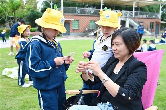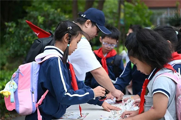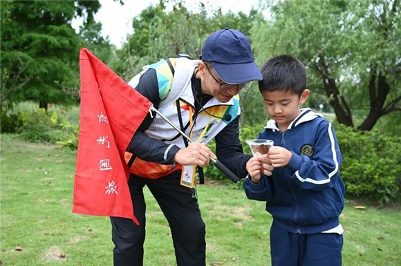 在导游的指引下,孩子们通过悉心观察、合作探究,解开一个个谜题,集得一枚枚奖章。他们高兴地找老师集章,集满章的孩子就能获得“科普小达人”的称号。
