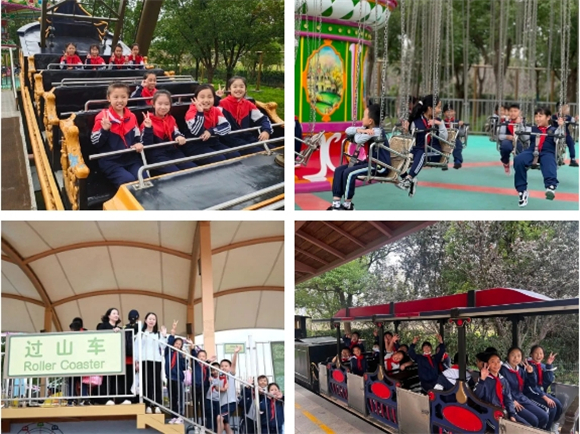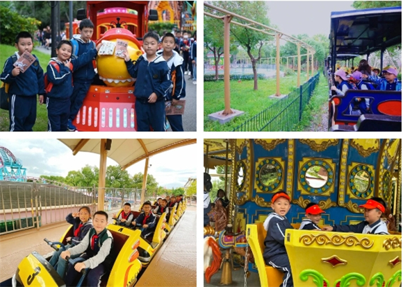 下午,在导游的带领、老师的陪伴下来到了乐园。坐一回旋转飞椅,骑一回自旋转滑车,再乘坐一次“森林小火车”……孩子们在游戏活动中兴奋快乐、欢呼雀跃、挥洒童年!